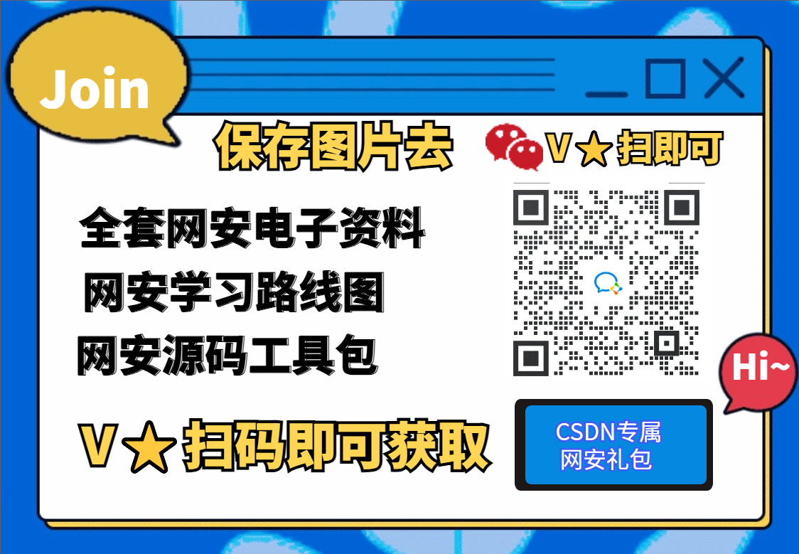 😃朋友们如果有需要全套《网络安全入门+进阶学习资源包》,可以扫下方码免费领取
