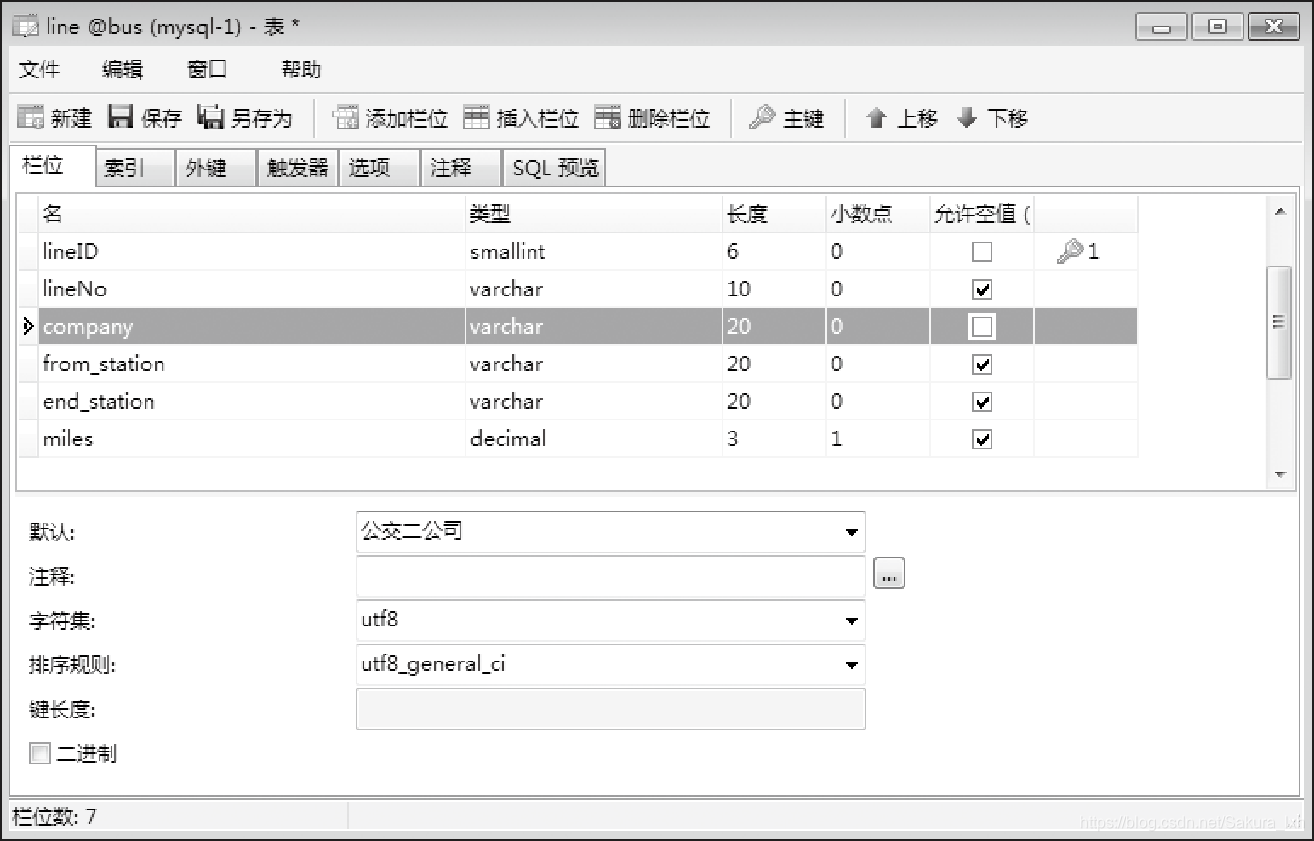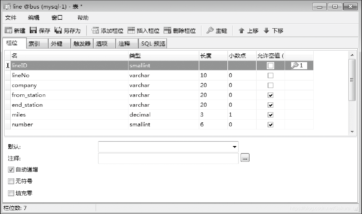 新增字段“线路编号(lineID)”,设置该字段为 smallint 类型。