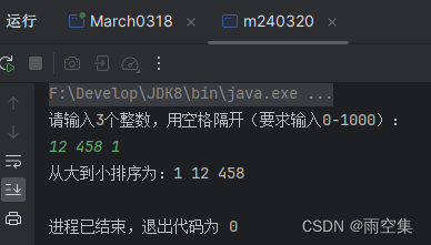 System.out.println("请输入3个整数,用空格隔开(要求输入0-1000):");