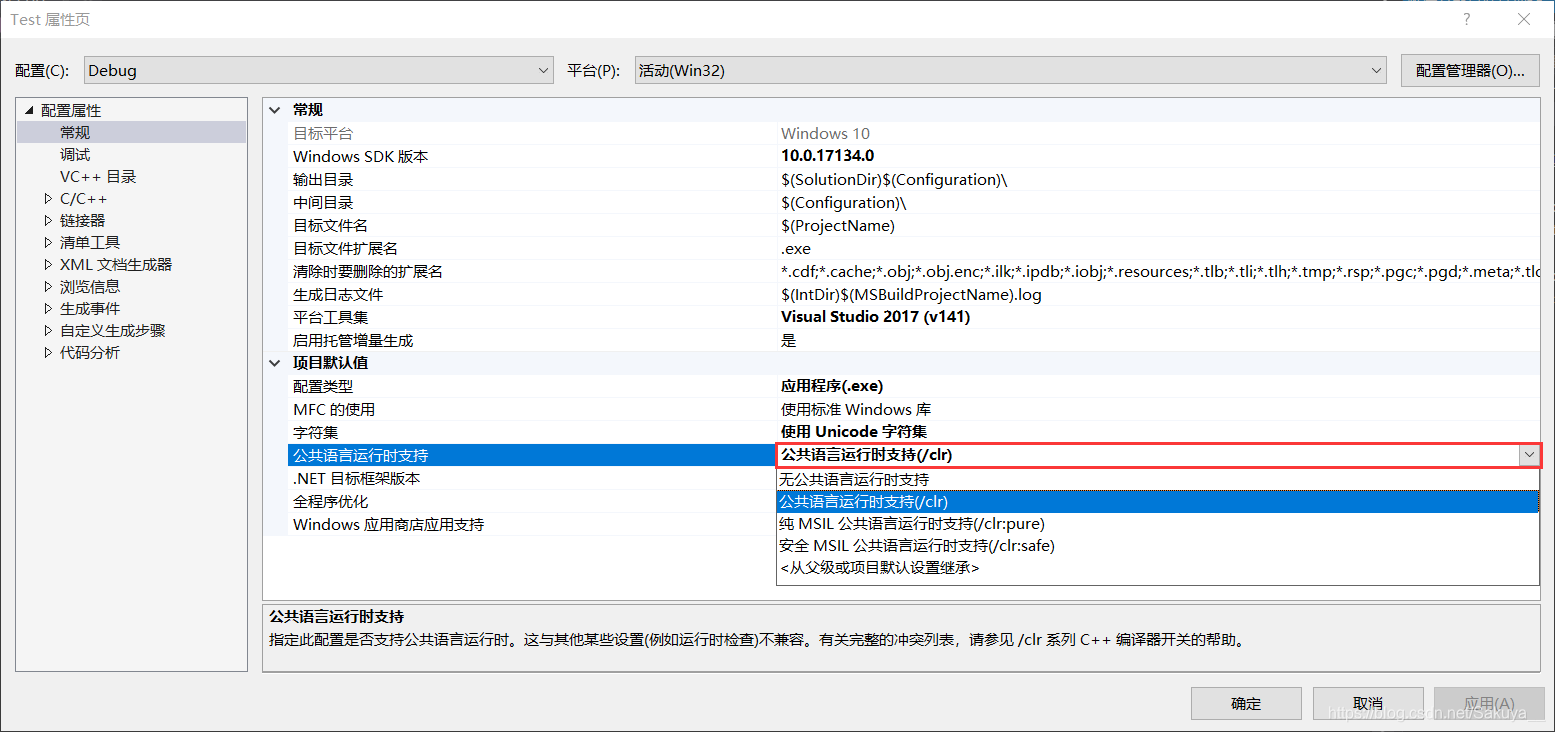 -代码编译选项需要更改,请选择项目→属性→配置属性→常规→公共语言运行时支持→公共语言运行时支持(/clr)