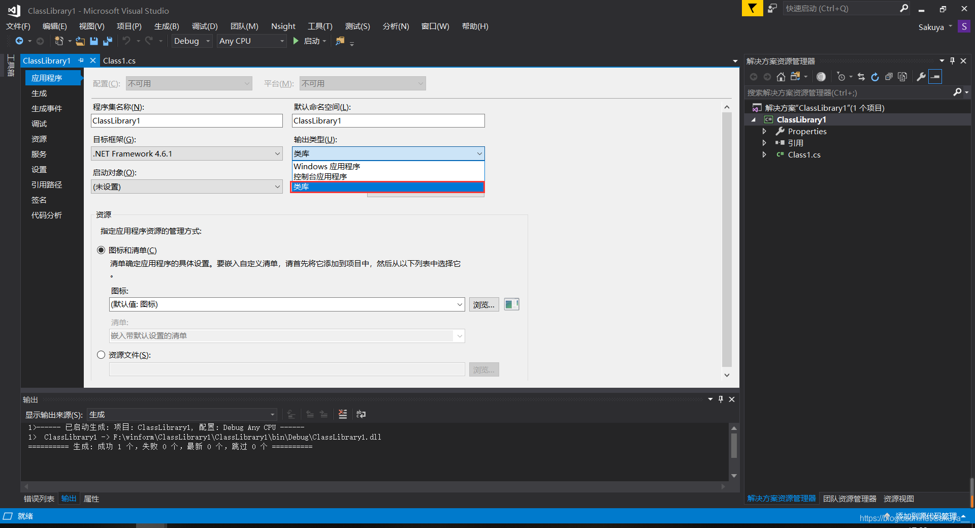 对于不是新建的窗体应用、控制台应用项目,同样可以生成dll: