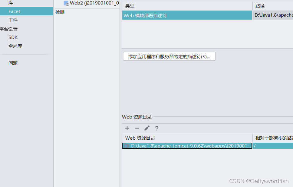 5、配置 facet ,此步很重要,配置 web 资源目录 ,路径配错,就会出现 404 错误,一定要定位到项目根目录,即有整个项目源码的地方