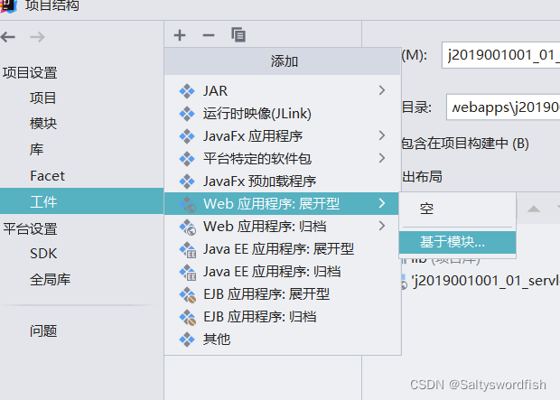 6、 配置 工件 ,此步选择Web 应用程序:展开型,选择项目即可