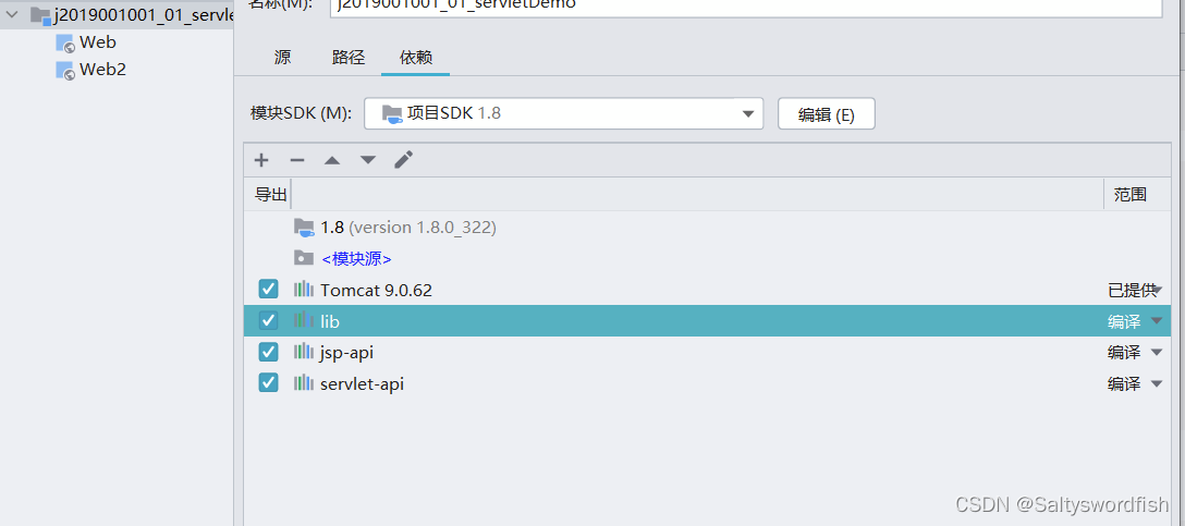 3、配置 modules ,其中 路径 定位到 web-inf/classes ;依赖 加入jdk和项目 web-inf/lib