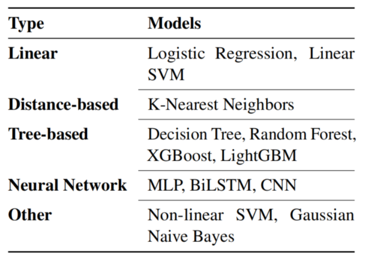 除 BiLSTM和CNN外。所有模型均采用scikit-learn库。这俩使用的pytorch。