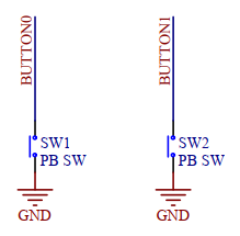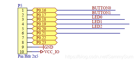 从这里可以看出,button0和button1分别对应P0.16~P0.17引脚,当按下按键的时候引脚电平会被拉低。熟悉单片机开发的同学应该了解,这种情况我们的IO需要配置成上拉以提高引脚的抗干扰能力。