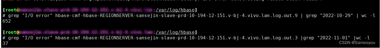 2022-11-01是停掉了 Major Compact 的,可以看到这个 IOException 与 Major Compact 是相关的。但是这个 IOException 对读的影响有多大是未知的。