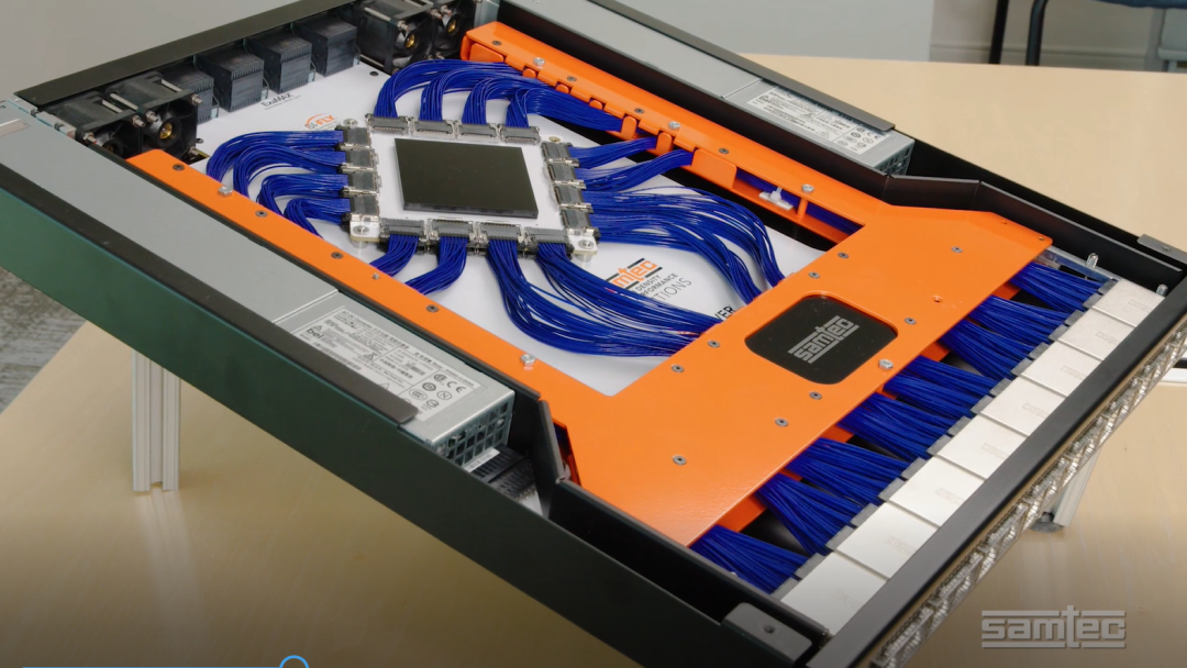 这个演示还显示了如何优化电缆管理以实现热负荷的均匀分布。从芯片封装到前面板I/O的路径是一个典型的架构,就像我们在数据中心和电信基础设施,或HPC(高性能计算)中看到的一些应用。