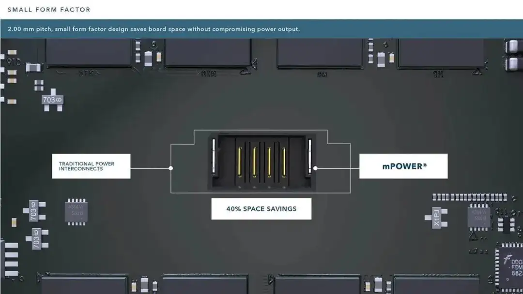 这样的连接器用在系统设计中,效果也是立竿见影——其PCB占板面积与传统的电源连接器相比,可节省40%,小型化优势明显。
