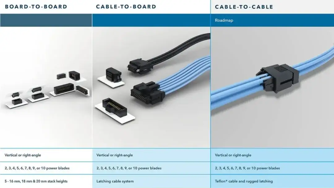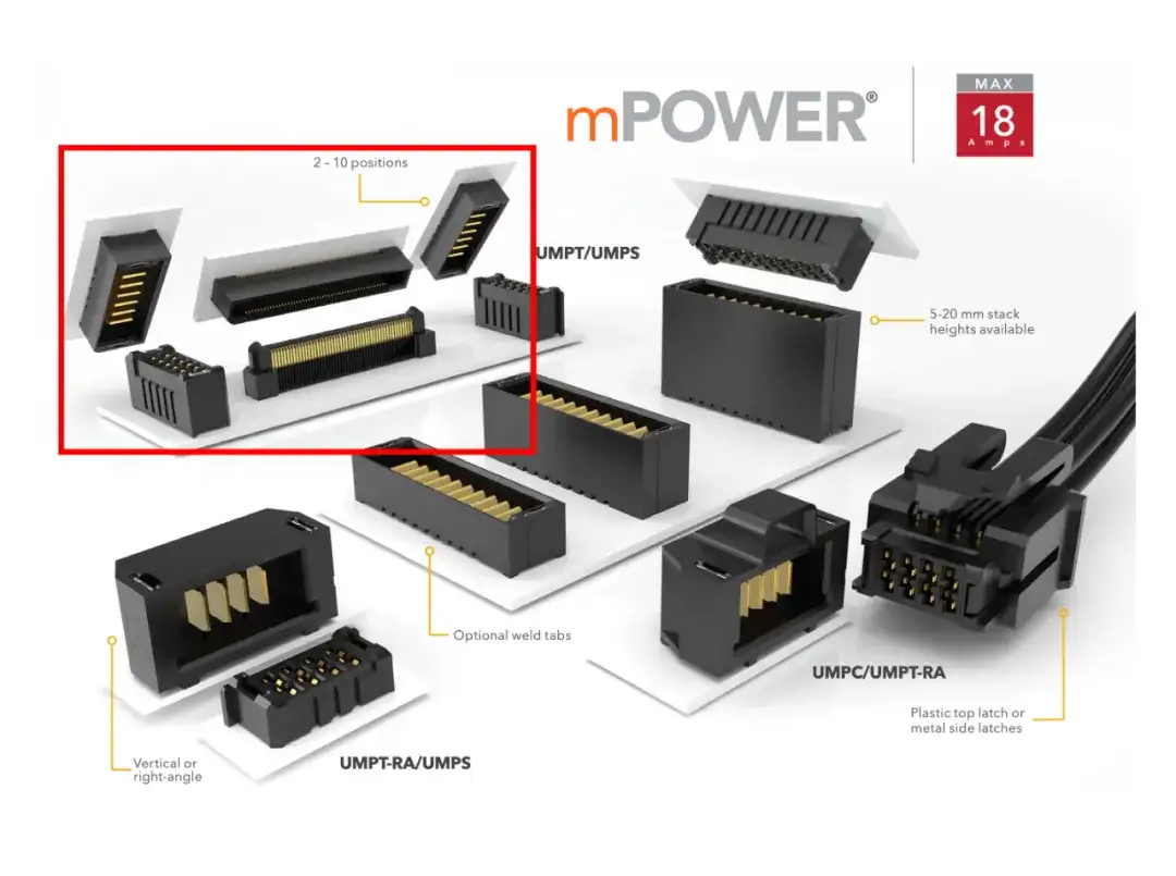 因此我们可以看到,比较成熟的电源连接器解决方案都是可以提供完整的产品组合,会包括不同针位数、不同安装配置(垂直或直角)、不同堆栈高度、不同连接方式(如板对板、线对板、线对线)等多样化的产品,为系统设计提供更大的灵活性。