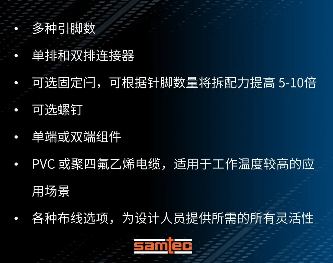 Samtec大约27%的销售额是定制和改装产品,大约36%的Samtec分离式线缆系统是改装或定制产品。比较主流的改装和定制设计包括:
