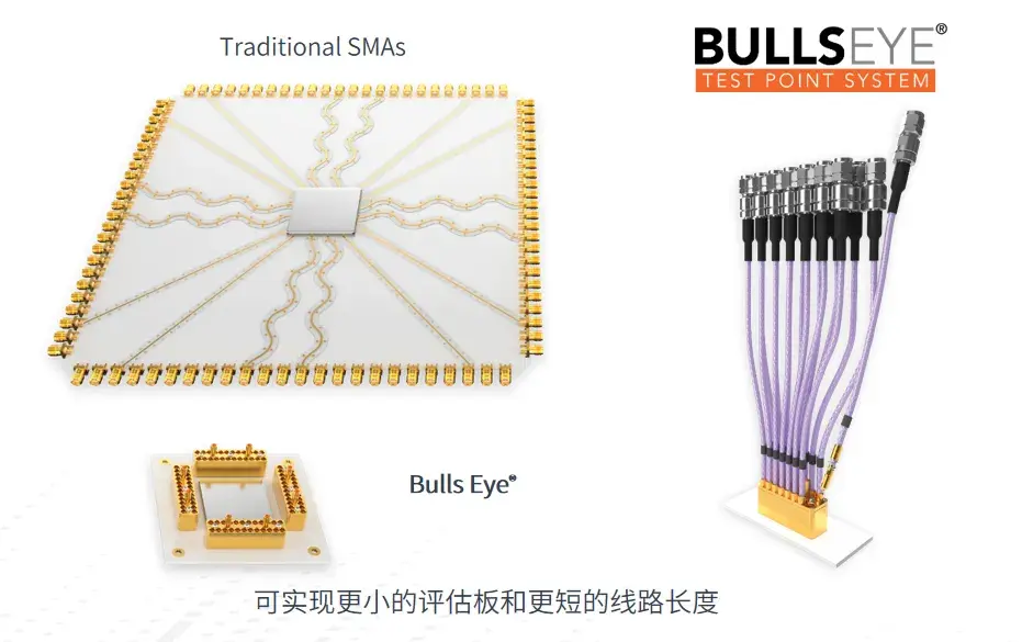 在芯片开发过程中,量测是必不可少的环节。Samtec 为客户推荐集成式的射频线束产品,如Bulls Eye®测试触点系统具有压缩接口、小尺寸、高循环次数和 70GHz 的高性能,相比离散 SMA 通常可节省 4:1 的空间,其高密度能实现更小的评估板和更短的走线长度,极大地满足了芯片开发中的测试需求,为芯片的研发和优化提供了有力支持。