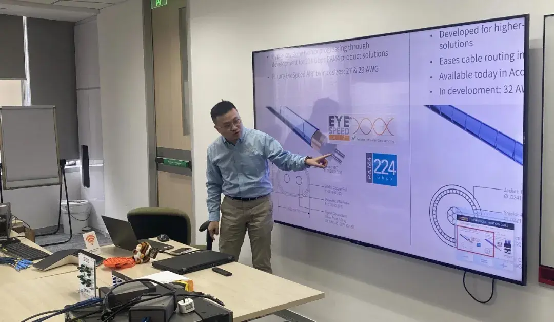 除了Samtec胡亚捷的分享外,来自主办方Keysight的专家们,也分别针对“高速 AEC/AOC 电缆测试解决方案”和“下一代AI互联的测试测量要求和测试方案”做了专业分享。