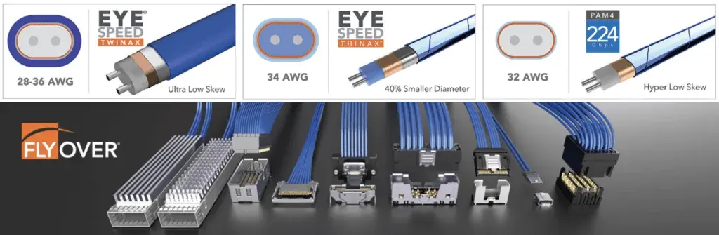 Eye Speed® 电缆技术能够支持下一代应用的超高密度和高性能需求,它与Samtec的高性能连接器结合使用,可以打造出行业领先的Flyover® 电缆解决方案。Flyover® 技术通过高性能电缆组件对信号进行路由,从而延长了信号的传输距离,提高了整个系统的信号完整性和散热性能。