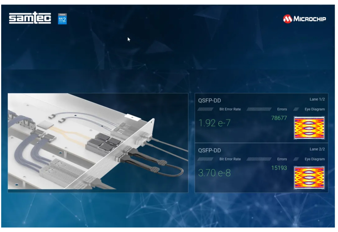 在这个Demo中,我们使用了Microchip META-DX2+PHY,生成了112G PAM4 PRBS信号到所有的通道中。