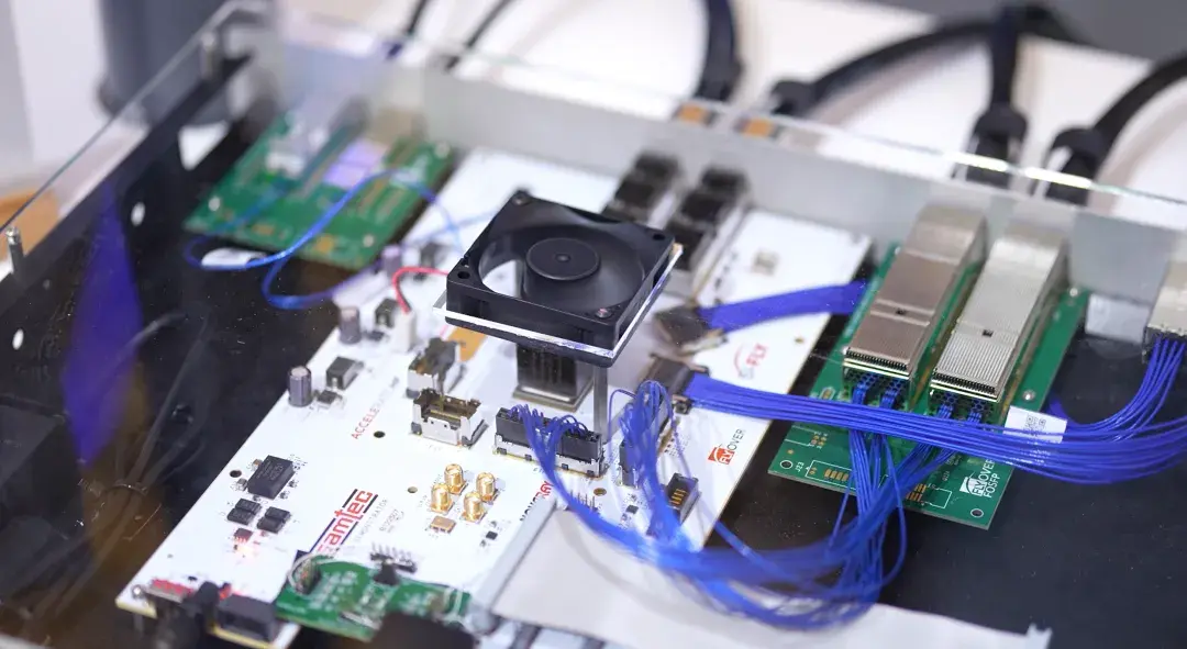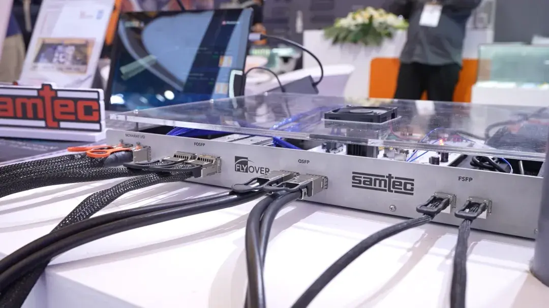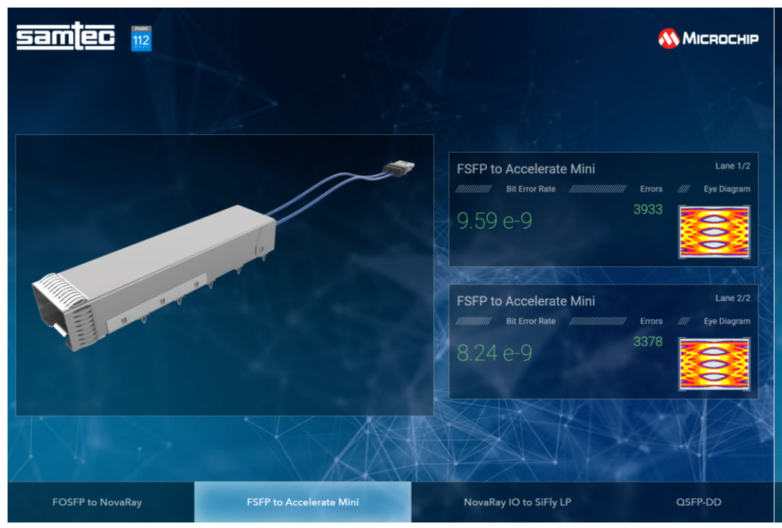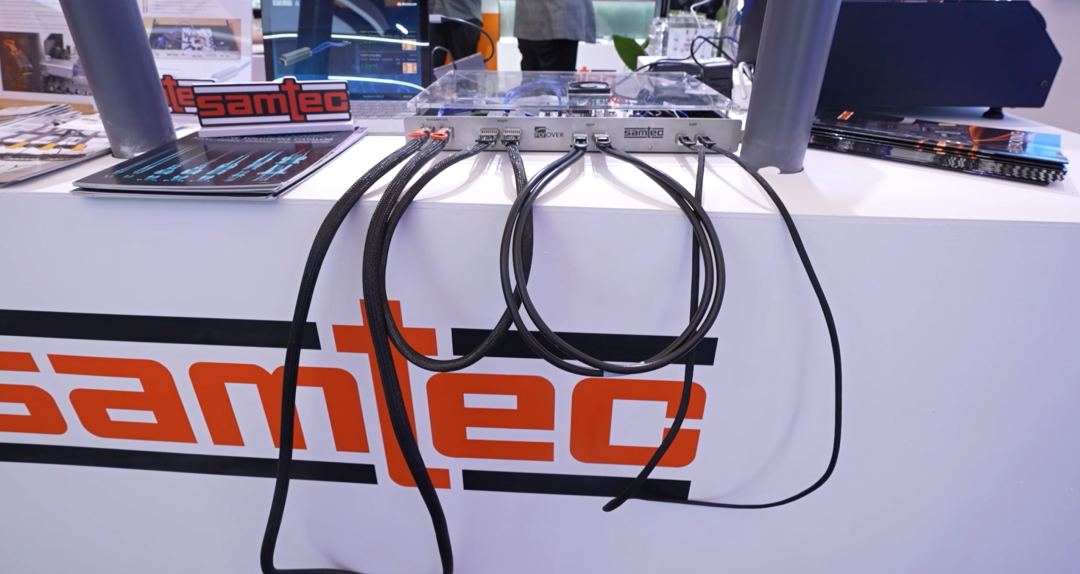 本次演示,来自于展会现场的前面板解决方案Demo,呈现Samtec Flyover® Cable System的优越性能。