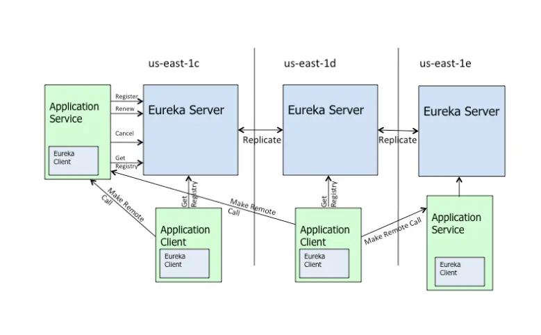 Eureka Server可以运行多个实例来构建集群,解决单点问题,但不同于ZooKeeper的选举leader的过程,Eureka Server采用的是Peer to Peer对等通信。