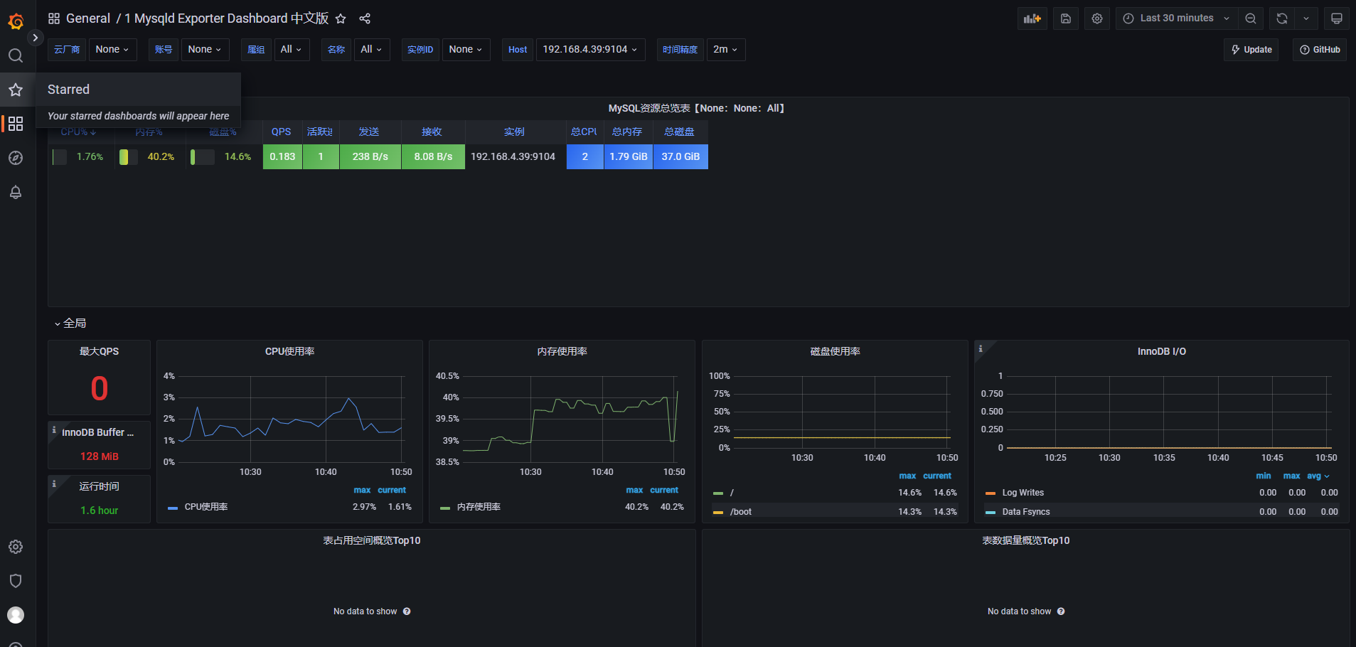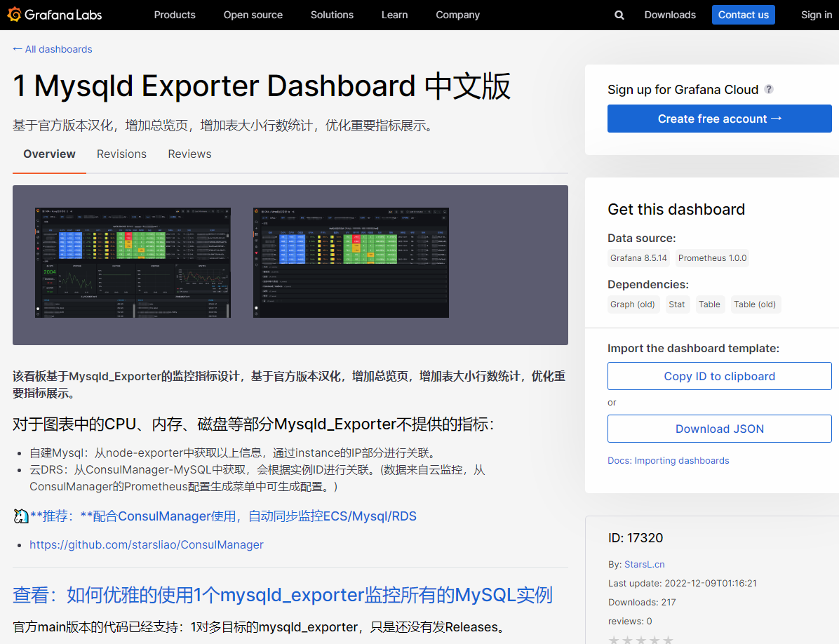 ②. 也可以导入Mysqld Exporter Dashboard 中文版。