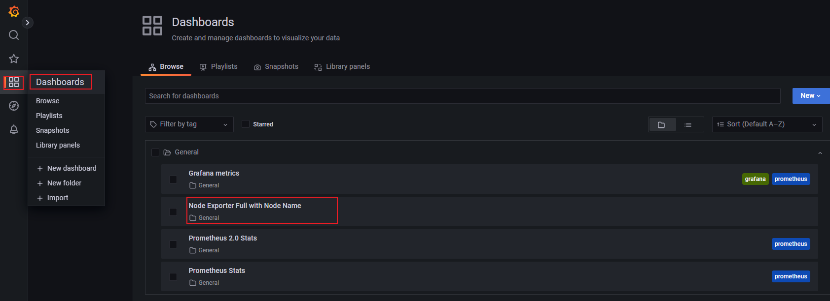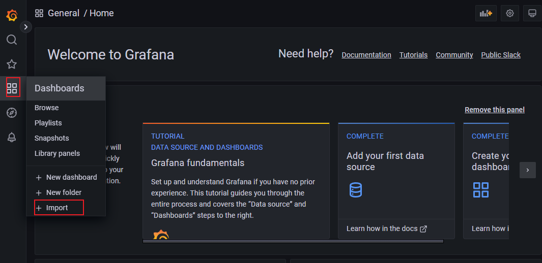 前面配置运行了node_exporter,为了更好的展现这个监控数据,点击图标中的Import,配置导入模板。