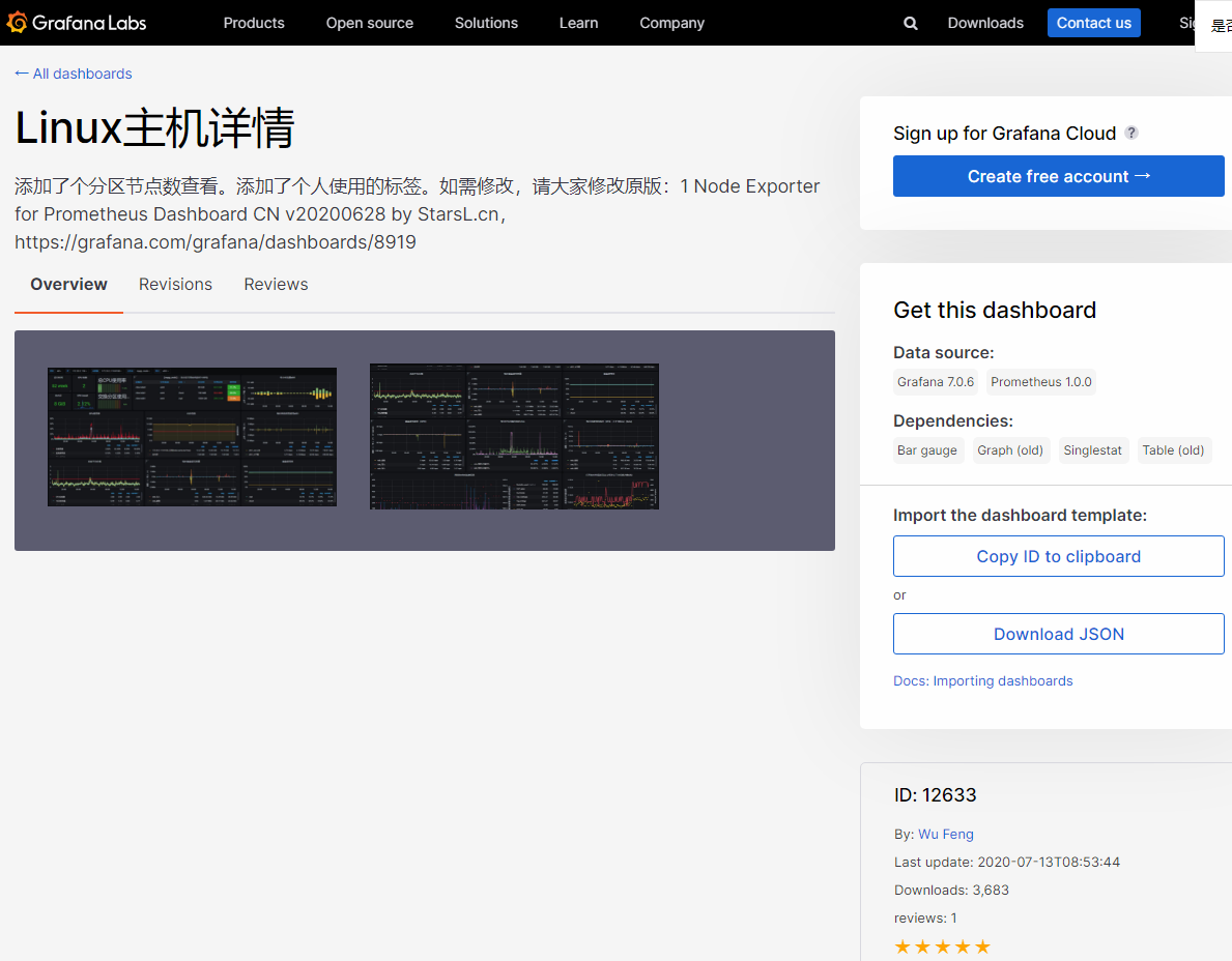 进入到心仪面板的详情页面,比如这个node_exporter模板。