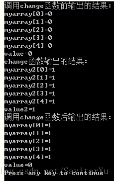 printf("调用change函数后输出的结果:\n");