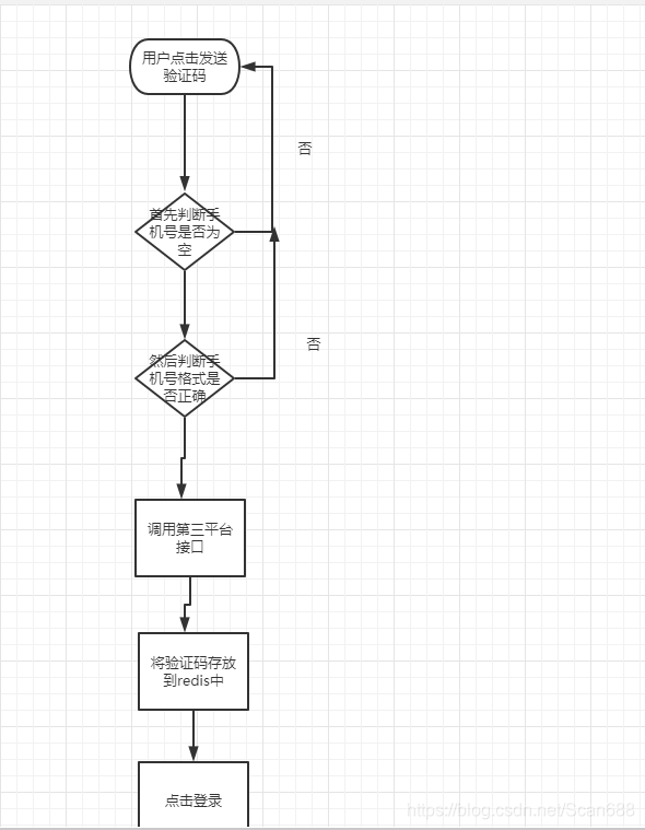 我用的是第三平台的短信服务,当用户点击发送验证码,会调用短信平台接口,从而给手机发验证码。流程如下: