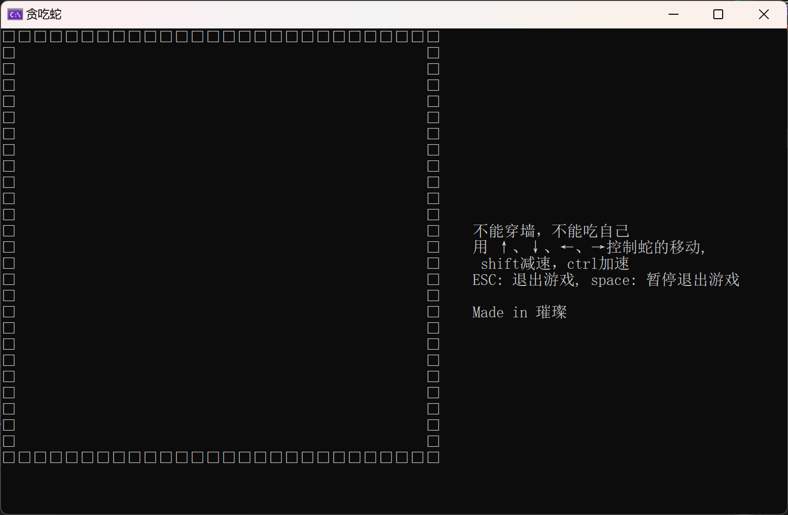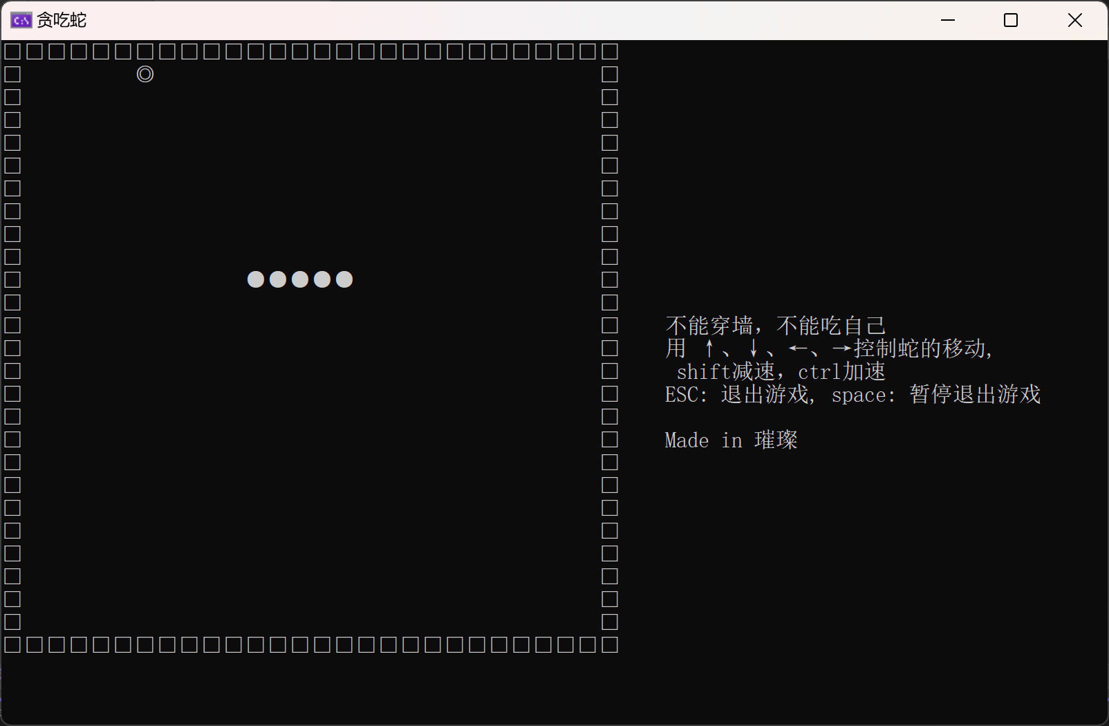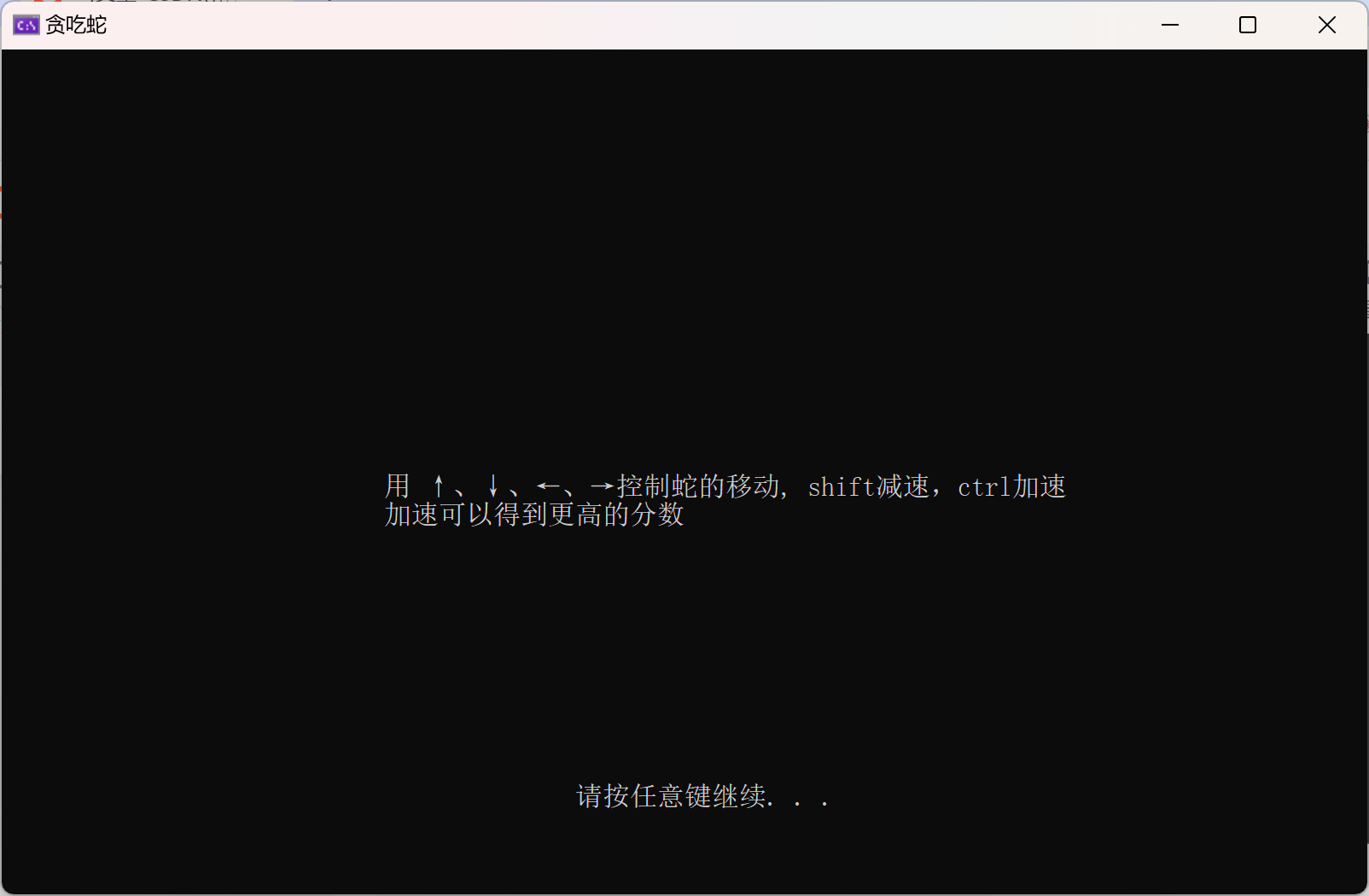 printf("用 ↑、↓、←、→控制蛇的移动, shift减速,ctrl加速\n");