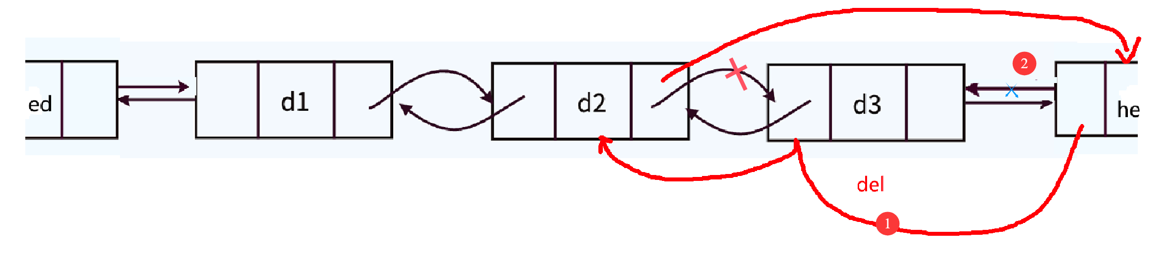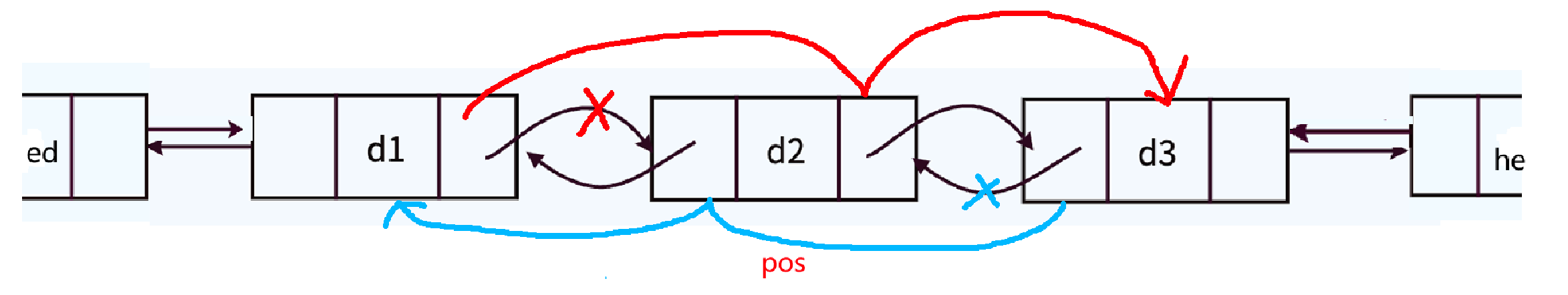 删除指定位置的数据时,pos已知,只需要通过pos改变d1和d3的指向,d1、d3就能连接。