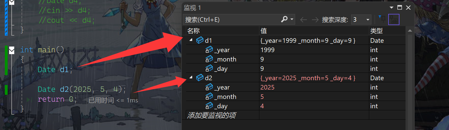 //否则就变成了Date d1();这种形式和函数的声明产生歧义