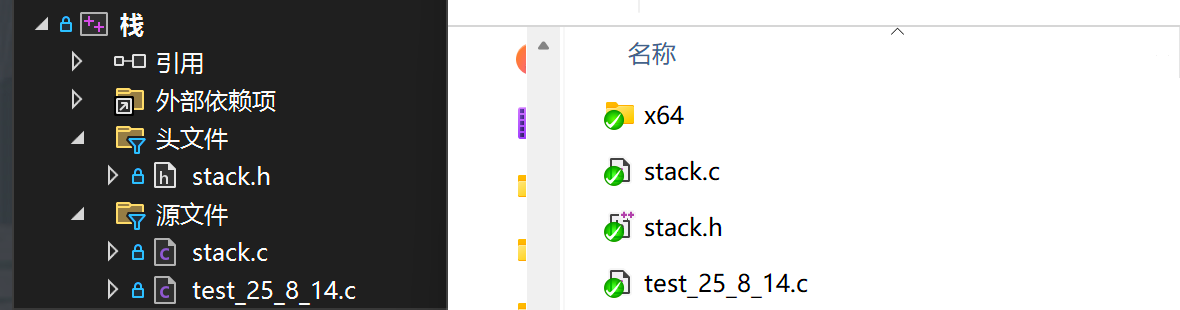 在VS上写代码,我们是需要创建项目的,直接新建项目就可以了。 在项目中就可以添加源文件和头文件。 C语言把 .c 为后缀的文件称为源文件,把 .h 为后缀的文件称为头文件。如下。