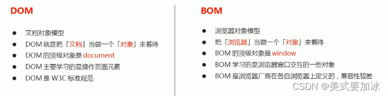 BOM缺乏标准,JavaScript语法的标准组织是ECMA,DOM的标准化组织是W3C,BOM最初是Netscape浏览器标准的一部分