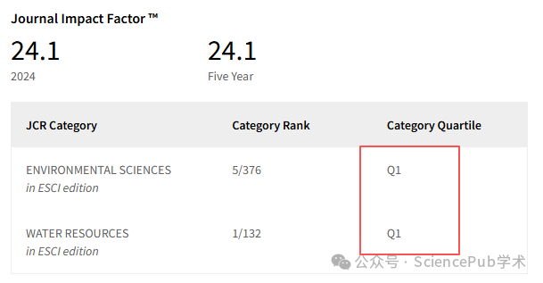 小编点评:目前《Nature Water》已被SCI收录,初始影响因子高达24.1,期刊在所属学科中均处于Q1,排名百分位均处于87%以上。虽暂未获得中科院分区,但是明年入选中科院1区TOP期刊几乎是板上钉钉!