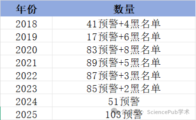 2025年12月7日,中国科学技术信息研究所(简称中信所)在第二届玉渊潭科研诚信会议发布了《2025年度国际期刊预警名单》,103种期刊入列,较去年增加52种,创2018年以来入列数量新高。据悉,中信所每年遴选的国际期刊预警名单未向社会公开发布,仅向科研管理部门定向发送。
