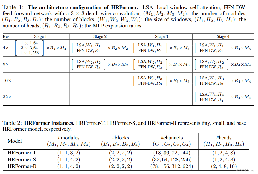 - 首先,HRFormer在stem和第一阶段都采用卷积,因为一些同时进行的研究也表明卷积在早期阶段表现更好。