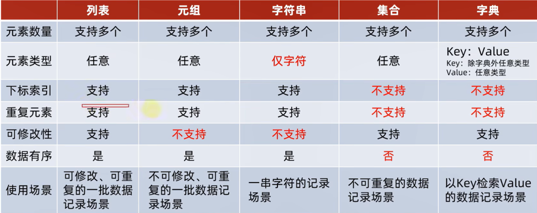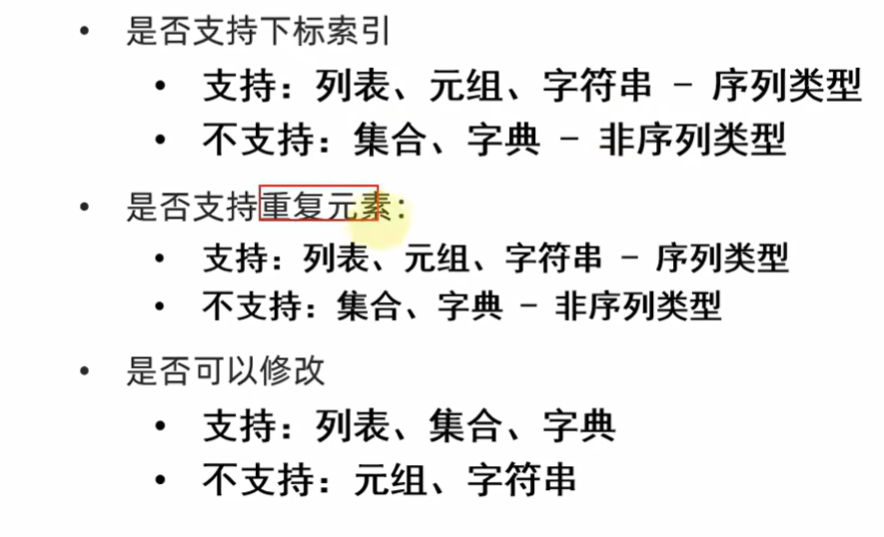 不存在重复元素、不支持下标索引访问元素