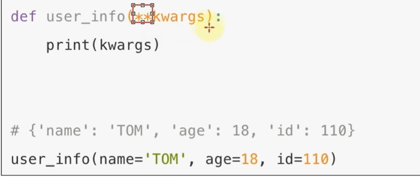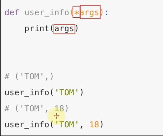 注:若函数调用既存在关键字参数又存在未知参数,则位置参数放置在关键字参数前