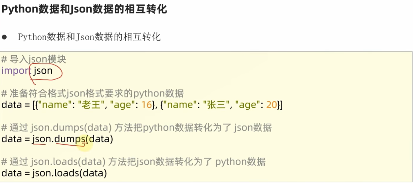 json格式:字典或列表(内部成员必须是字典)