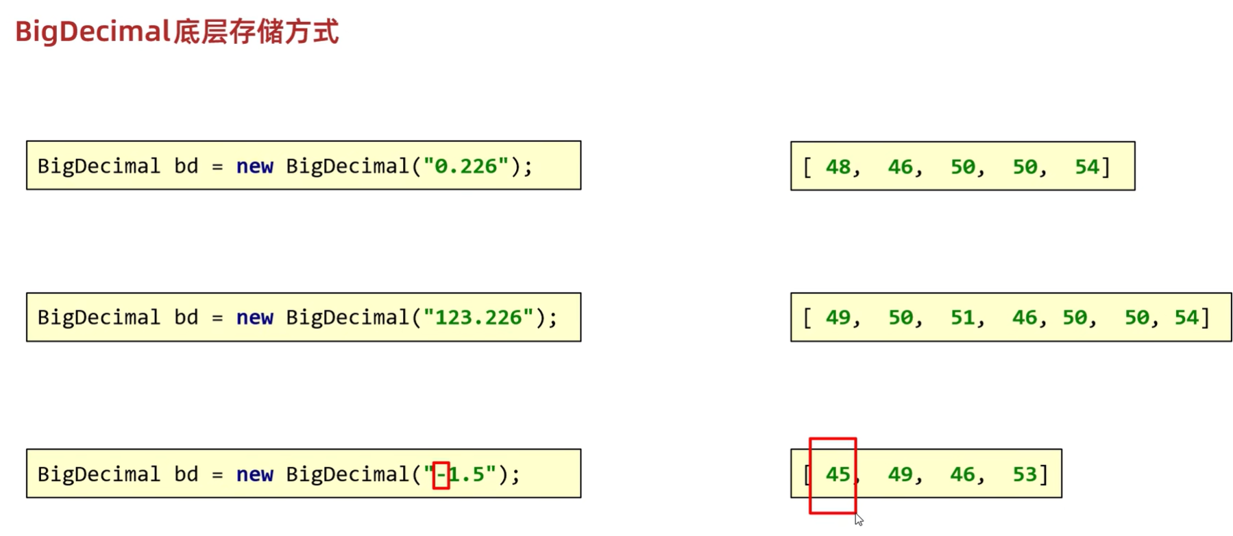 将BigDecimal的对象字符串分成一个个字符,将其对应的ASCII码存储在数组中