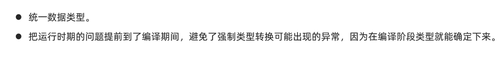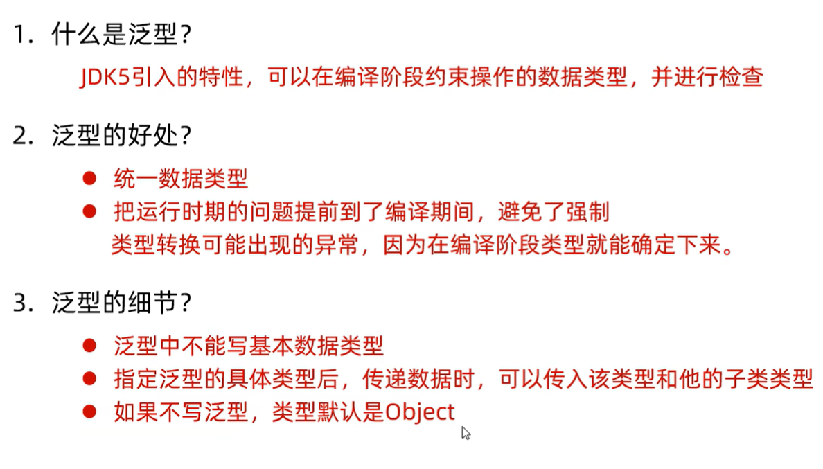 若不给集合指定类型,则所有数据均为Object类型,则获取数据时无法调用特有功能,且无法强转