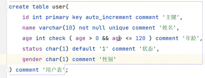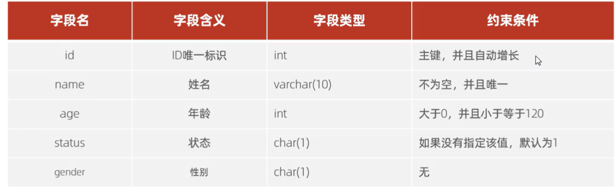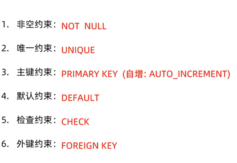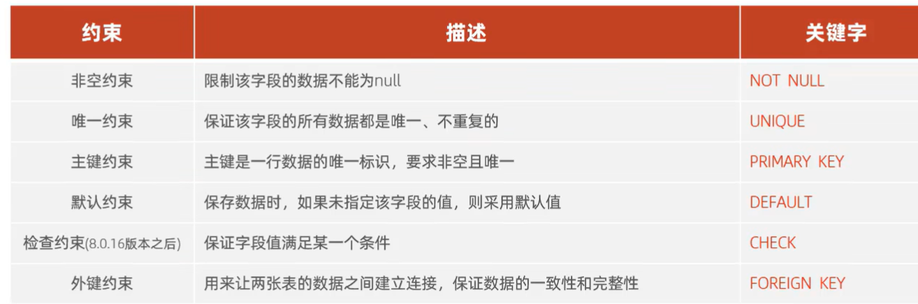 作用于表中字段上的规则,限制表结构中存储的数据,保证数据的正确,有效性和完整性