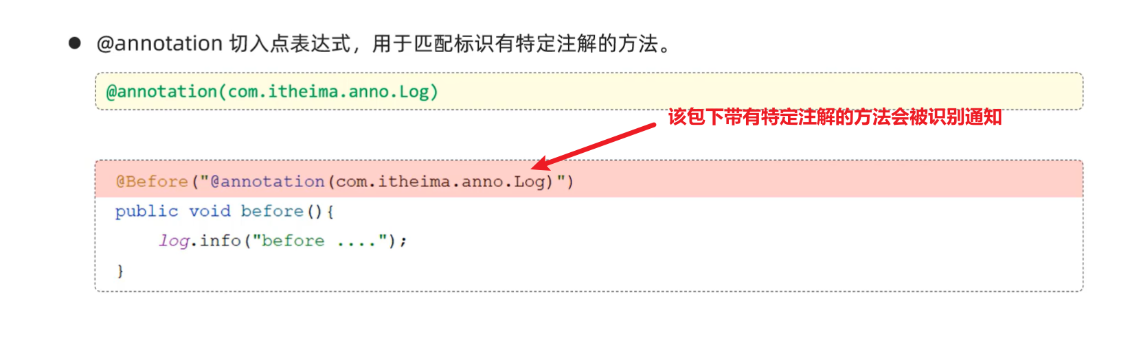 @Around("@annotation(com.itheima.anno.Log)")