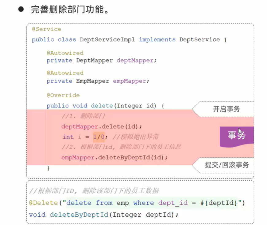 empMapper.deleteByDeptId(id);//删除部门对应员工
