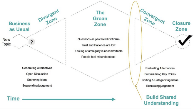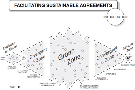 (2) 推进会议进程,三个区:发散区,呻吟区,收敛区。