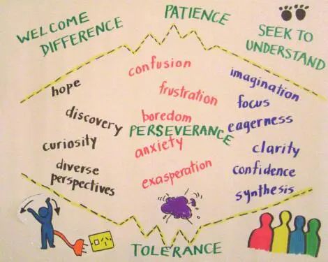 回顾会开不好就变成了投诉会或吐槽会,这违背了Scrum设计回顾会的宗旨。首先我们允许团队成员真实表达情感,特别是对过去一个迭代的个人感受。每个人都是有情感的,ScrumMaster应该有敏锐的感知力, 人们在讨论过程中的三个不同阶段(发散区,呻吟区,收敛区)的感受是不一样的:引导者要快速捕捉这些,承认感受,接纳成员的感受。而且要丰富我们表达情感的词汇。