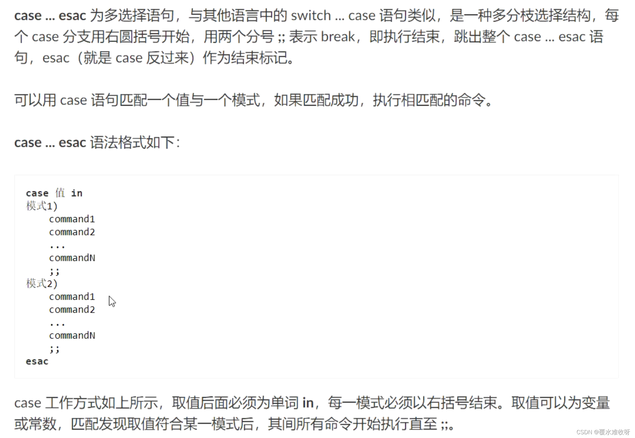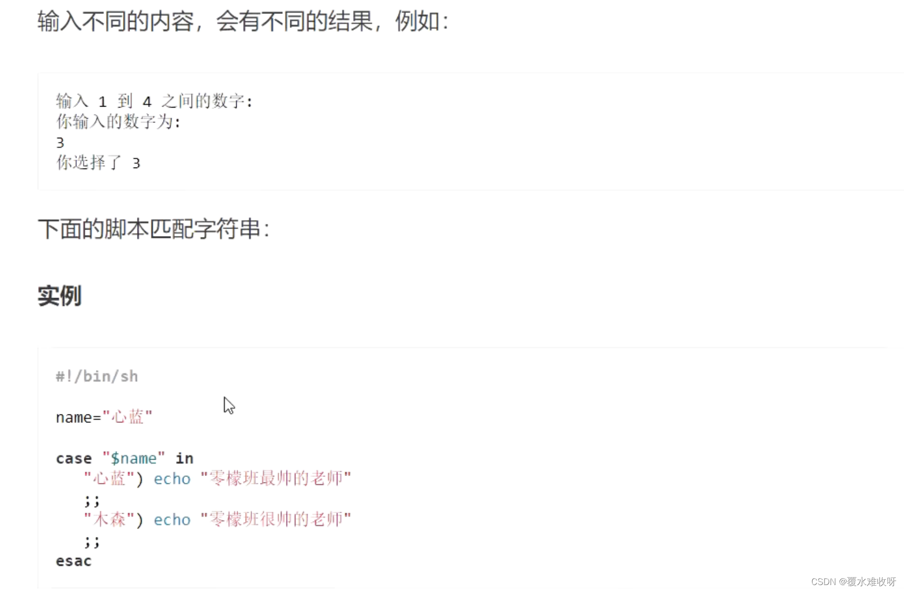 select in 通常和 case in 一起使用,在用户输入不同的编号时可以做出不同的反应。