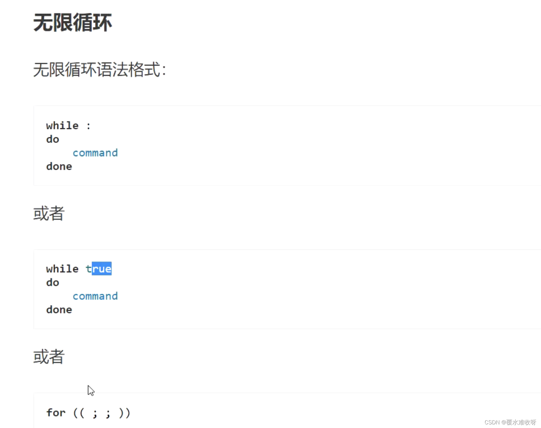 注意,select是无限循环(死循环),输入空值,或者输入的值无效,都不会结束循环,只有遇到break语句,或者按下Ctrl+D组合键才能结束循环。