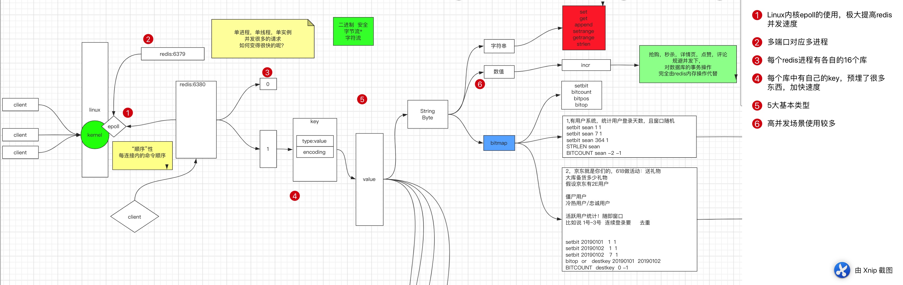 本文详细介绍了Redis中Value-string类型的操作,包括SET、GET、DEL、FLUSHDB、MSET/MGET、APPEND、GETRANGE、SETRANGE、STRLEN、TYPE、INCR/DECR系列以及BITMAP相关的SETBIT和BITCOUNT等,还讨论了字符串编码和Redis的原子性与内存管理。