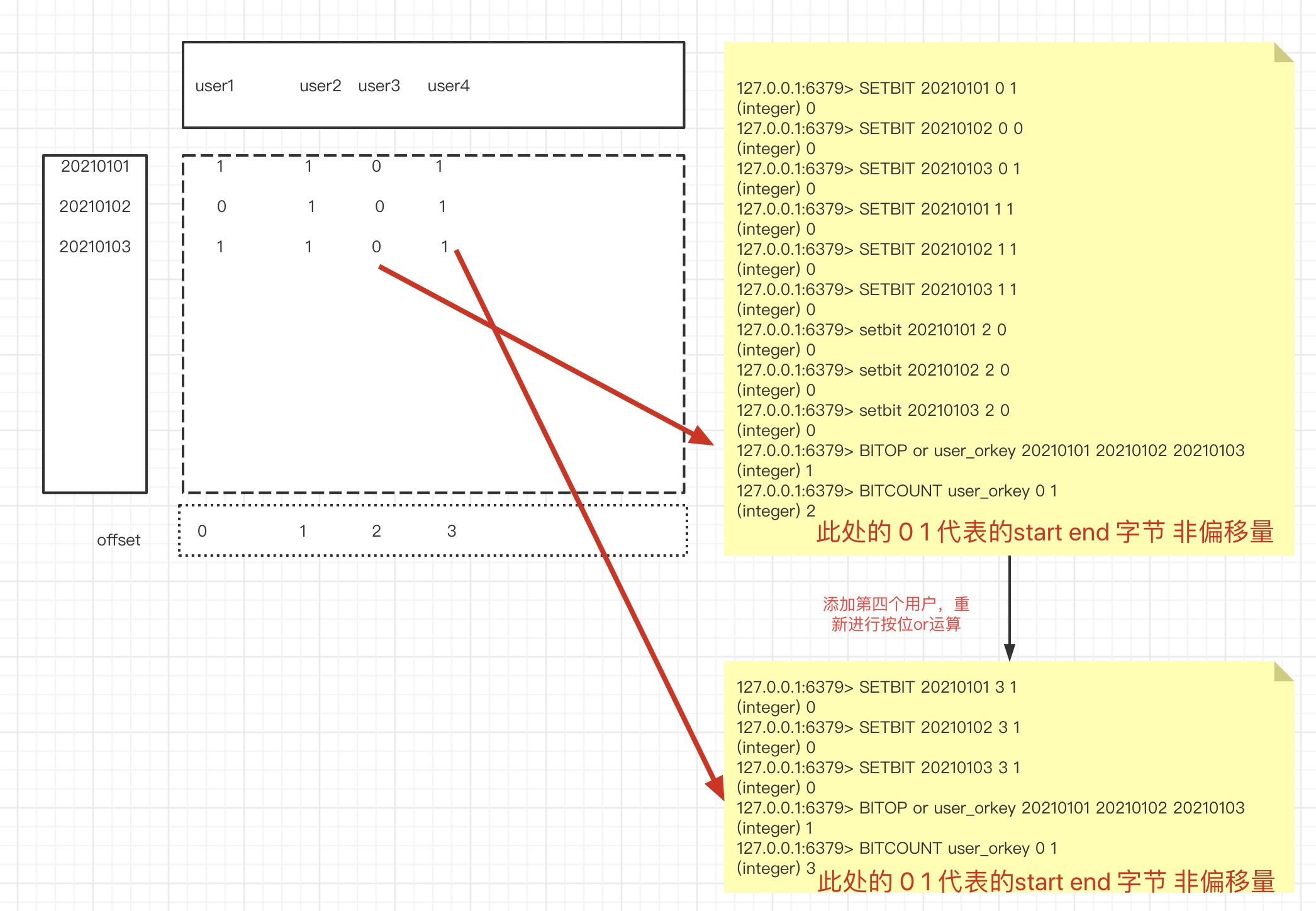 但是需要注意,Redis 中字符串的最大长度是 512M,所以 BitMap 的 offset 值也是有上限的,其最大值是: