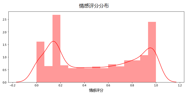 So,这里我们用SnowNLP这个库,为每条评价进行情感打分,通过分值来量化情感倾向。(分值在0-1之间,越靠近0负面倾向越强,越接近1则正面情感越强)