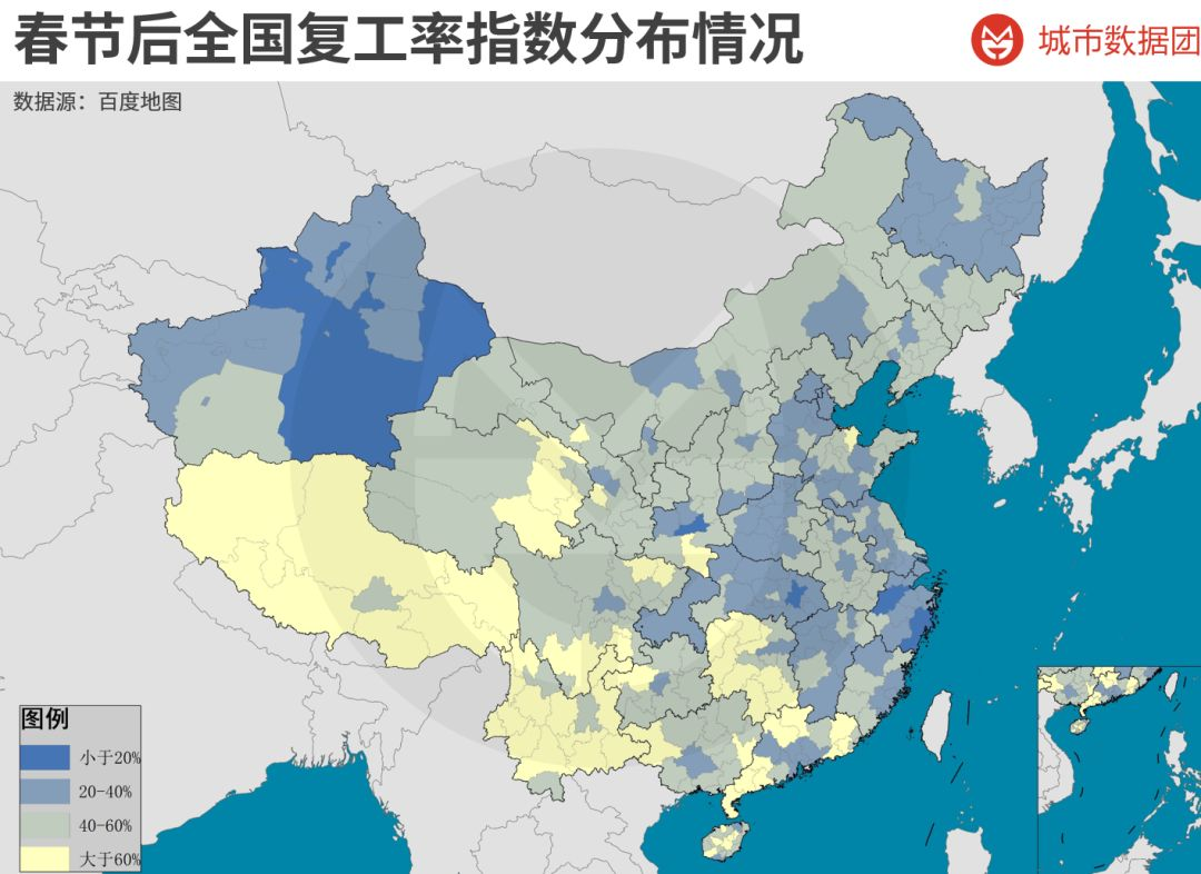 (图中蓝色越深,复工率指数越低)